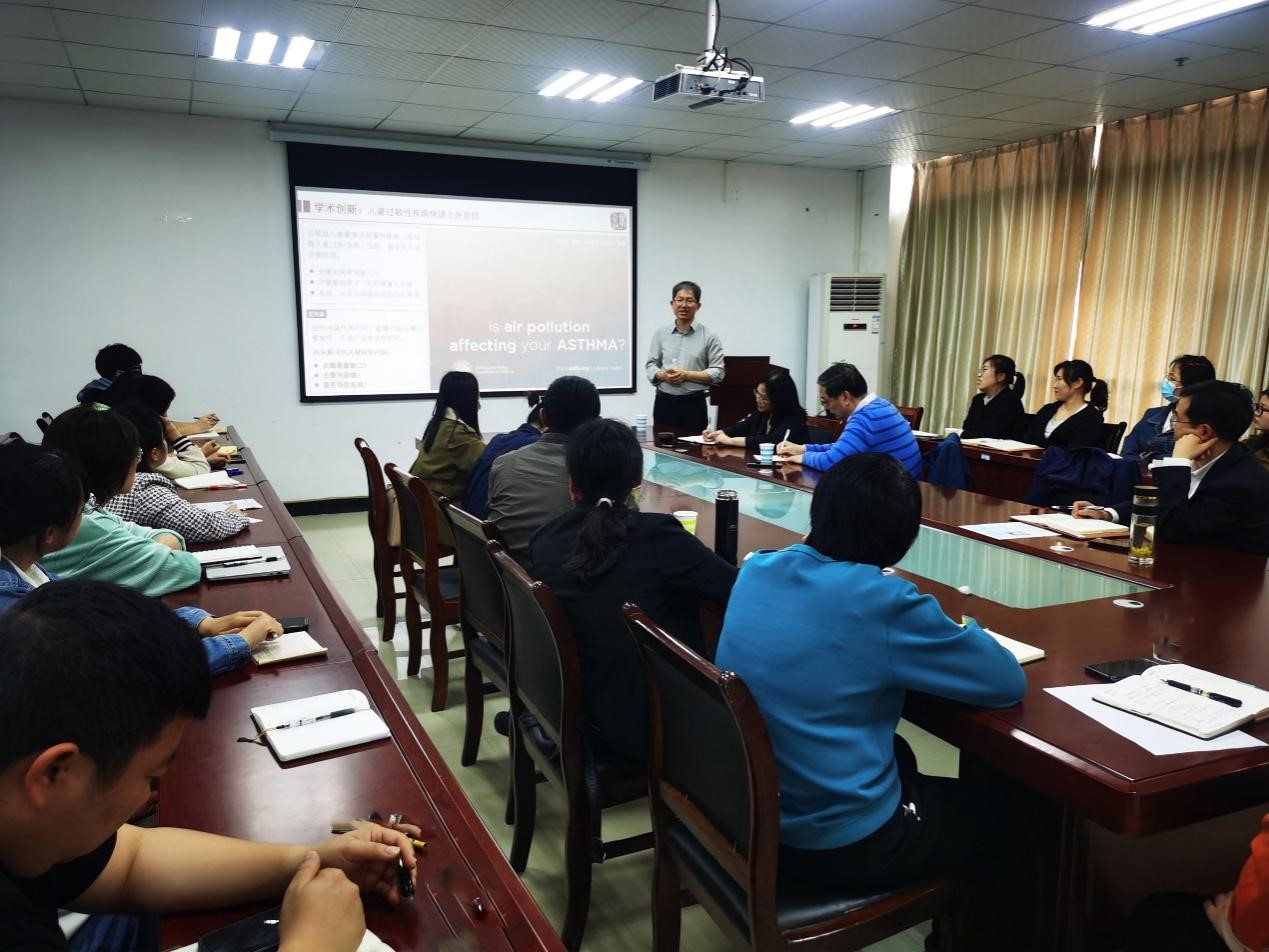 邓教授别具一格、生动有趣的报告给与会师生很大启示,武阳教授咨询了早期污染暴露窗口期的问题,其他教师也就感兴趣地问题进行了交流,期待与邓教授的研究团队进一步开展学术交流与合作。邓教授作为环境健康领域的知名专家,入选爱思唯尔(Elsevier)“中国高被引学者”,其关于生命早期(建筑与城市环境)污染暴露对儿童健康影响的研究,先后被包括《Lancet》在内的多个权威期刊引用,引起了国际同行的广泛关注和好评。