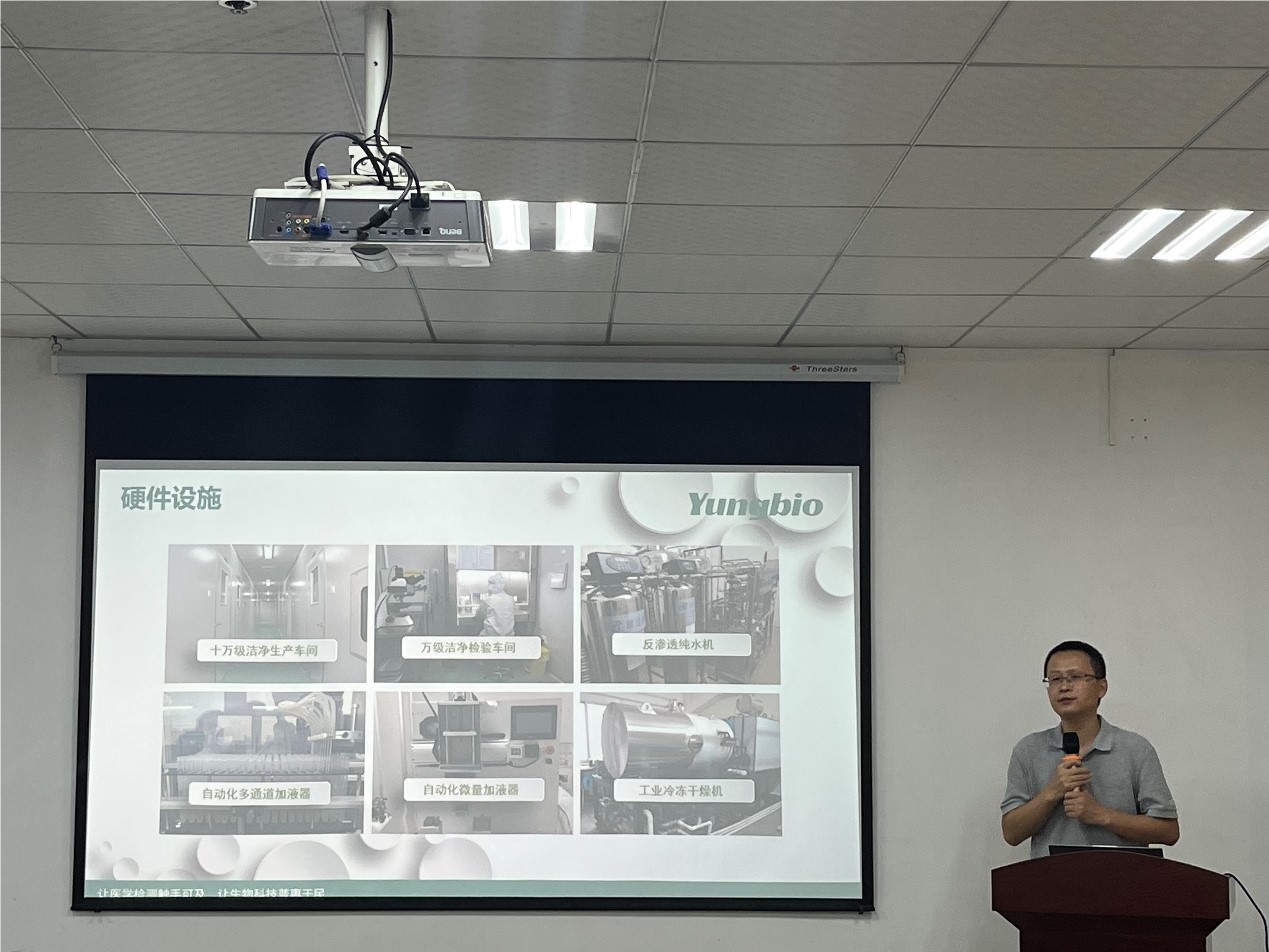 蔡飞介绍了公司及古天乐太阳集团城的基本情况及在科技创新、人才培育方面取得的成果,并重点就公司科研团队、项目成果、人才队伍优势等进行了说明。蔡飞表示近年来公司高度重视科技创新工作,希望双方深化校企合作,共促高质量发展。钱晓东分享了其毕业后的工作经历,介绍了其公司的相关情况,并分别从体外诊断试剂、国家知识产权、生产技术平台及产品应用领域做了详细讲解了公司的主要业务、核心产品、技术优势。在座的科研团队成员就各自感兴趣的问题、特别是就科技研发及成果转化等方面进行了深入交流,并一致表示可在人才培养、实习就业、科研合作与协同创新等领域开展进一步的深度合作。