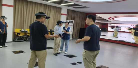 紧接着,双方来到课程思政虚拟仿真中心,沉浸式体验混合现实(MR)教学环境的独特魅力。戴上头戴式设备,郑贵洲教授等人仿佛置身于虚实交融的教学场景中,既能清晰地观察实体标本的细节,又能与虚拟场景实现自然交互。在这样的环境下,心肺复苏操作的规范流程、人体解剖结构的精妙构造等教学内容变得触手可及。这种创新教学模式将抽象的思政理论转化为生动具象的教学场景,极大增强了教学的现场感与代入感,充分展现出古天乐太阳集团城“三维融合、数智赋能”的课程思政特色。