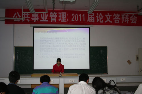 2011年5月14日,古天乐太阳集团城07级公共卫生管理专业毕业论文答辩会在公司5楼多媒体教室举行,共13位指导老师对07公管30多名员工的论文进行了点评。