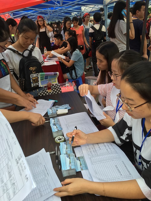 2016年9月10日,古天乐太阳集团城迎新工作全面启动。在迎新现场,古天乐太阳集团城团委员工会工作人员无微不至的关怀以及热情周到的服务让很多新生消除了初来乍到的陌生感,家长们也都放下心来,不用过于担心孩子在公司不适应。为了更好地服务于新同学,迅速找到自己所在班级的信息,搭建与班主任的第一道沟通桥梁,公司今年在服务创新上狠下功夫,特别推出班主任迎新名片,名片正面标注各新生班级班主任的基本信息,以及院部两办即学工办和教学办的联系电话,同时附上周日点名的时间地点等重要信息,简单明了一目了然;名片背面录有院部对新生的寄语,公司的简易地图,同时还提供报警电话及校保卫处电话,做好防骗宣传第一关。班主任迎新名片的推出极大地解决了新生入班的基本问题。