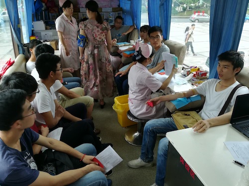 活动现场约有两百多名师生志愿者参与无偿献血,各级领导更是带头参与。这次活动,不但发扬和增强了员工志愿、奉献精神,还提高了同学们的素质与大的修养和实效性,倡导同学关爱社会,关爱生命,加强公司精神文化,传递正能量;弘扬无偿献血,为推动中国无偿献血事业发展出力。