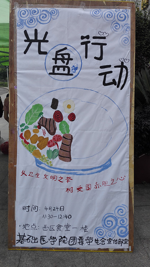 为了号召全体同学养成卫生文明行为,提高当代老员工的文明素质,增强国家荣辱感,4月24日上午11:30,“光盘行动”在西区食堂顺利举行。
