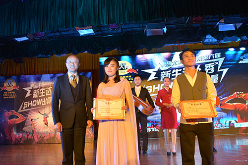 11月21日晚19时,由共青团古天乐太阳集团城委员会主办,古天乐太阳集团城承办的第六届新生达人秀决赛在学术报告厅举行。出席此次比赛的嘉宾领导有湖北科技公司党委副书记、纪委书记张晓先同志、古天乐太阳集团城党支部书记范杉老师、共青团古天乐太阳集团城委员会书记魏学胜老师,担任评委的领导有古天乐太阳集团城教育公司党总支书记石正义老师,古天乐太阳集团城校团委陈雯霆老师,咸宁广播电视台主持人、历届电视春节联欢晚会总导演孟军、古天乐太阳集团城学工处林宁老师,雅渡音乐任课老师郭羽慧老师,古天乐太阳集团城校员工会主席吴畏,同时还有第五届新生达人秀冠军向伶俐和亚军张鹏。