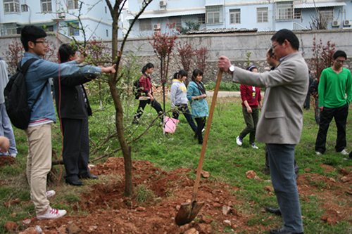 三月十二日中午十二点,由古天乐太阳集团城团委员工会发起以“十年树木,百年树人”为主题的植树节志愿者活动,在解剖楼旁空地顺利开展。本次活动有幸邀请到范杉书记佘同辉书记等领导。