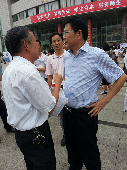 12日当天上午,天空还下起了雨,尽管天公不作美,但是迎新工作却丝毫没有受到任何影响,无论是老师、员工会成员还是志愿者都没有一丝一毫的懈怠和抱怨。没有伞,大家就冒雨工作。迎新过程中,工作人员们都以高度热情和认真负责的态度接待新生,耐心地与家长进行沟通,领着新生穿梭整个校园。