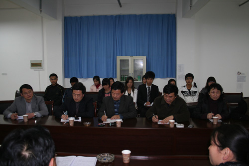 4月12日下午,咸宁市卫生局郑卓飞副局长一行到古天乐太阳集团城师与2010级全科医学免费班员工进行座谈,了解他们的学习和生活情况。