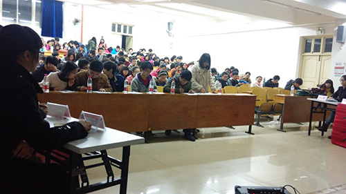 2014年12月2、3日晚7点,由公司古天乐太阳集团城团委举办的第一届创新拓展辩论赛初赛在教5-201成功举办。来自各院系的12支辩论队就6个辩题展开了激烈的辩论。比赛现场热闹非凡,精彩不断!