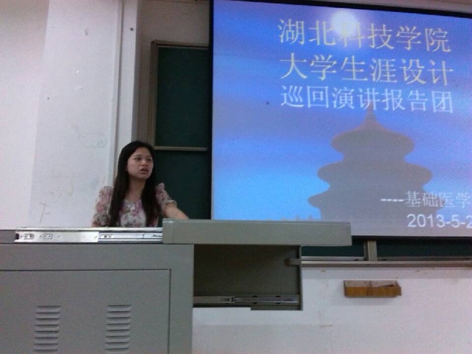 本次报告中,四位演讲者具体、全面地讲述了自己的老员工涯设计,为同学们描绘了一幅幅未来的理想蓝图。邓正萍同学的演讲主题——“为自己的青春代言”,开篇点明梦想是注定孤独的旅行。随后,通过自我评估(择己所爱,择己所长)、职业匹配(择时所需,择己所利)、行动措施(按时间进行分解,按性质进行分解)这三方面的综合分析,确定了自己的职业方向——临床药师,并制订了系列行之有效的计划。报告完毕后,进行了现场提问,四位同学更是热心的与大家分享自己的经验。
