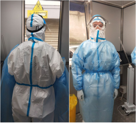 覃羽同学参加穿脱防护服的培训