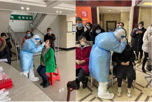 参加培训后,单位立即组织覃羽同学等相关工作人员对十九名该公司实习生进行咽拭子与鼻拭子的病毒核酸采样,采样过程开展得相当顺利,一个小时左右便完成了采集工作,并于当天下午,完成了检测工作。