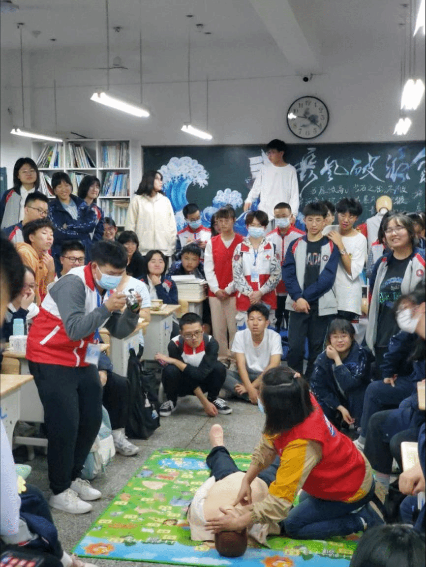 活动接近尾声,我们对同学们进行了采访,他们说:“假如某一天遇到突发伤害事件时,希望我可以为他人做出一点绵薄的贡献;“因为家族成员中有心脏病史,如果能掌握心肺复苏技能,能让家人少一些担忧,多一些安慰。”在活动总结中,韩璐老师谈到:“大多数同学在胸外按压的过程中显得吃力,可见,要到达标准的心肺复苏操作,同学们仍需努力。今后希望同学们强健体魄,关爱生命,理解心肺复苏的意义,掌握急救知识的技能。”