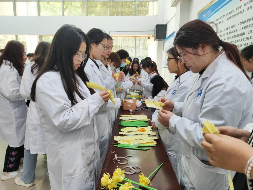 讲解员们介绍完毕,全体师生鞠躬90度,向医学先驱、遗体器官捐献者和大体老师们表达感谢,并将亲手制作的菊花献给他们,寄去一份追思、一份尊敬、一份感恩。员工代表刘鲁迪发言,表示通过这次清明活动更加理解了生命的意义,自己一定会努力学习,用医学知识武装自己,治病救人,以此慰藉那些曾经为医学事业奉献终身的前辈。教师代表张涛老师告诫同学们,清明祭祀是对自己已故亲人对一种原始的、朴素的爱,是小爱;我们更应该学习先贤们和那些器官捐献者毫无保留的奉献精神,这才是一种大爱。