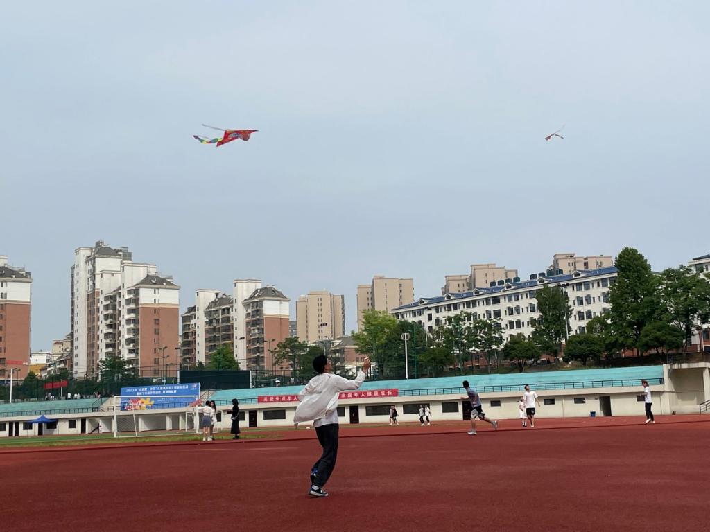 天气晴朗,春风和煦,同学们带着自己亲手制作的风筝来到操场。在工作人员讲解如何组装风筝及放飞注意事项后,大家集体放飞风筝,同学们手拿着线轴和长线,牵引摇动,放飞自己独一无二的创作作品,各式各样的风筝在天空中自由的翱翔,与此同时放飞的也是他们用双手绘制出的对未来的展望,这成为校园内一道靓丽的风景。风筝在空中飞舞,运动场上充满了欢声笑语,心灵得到了治愈。