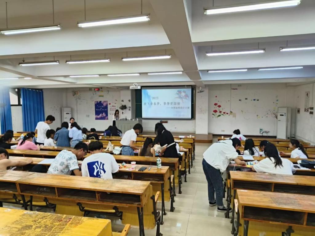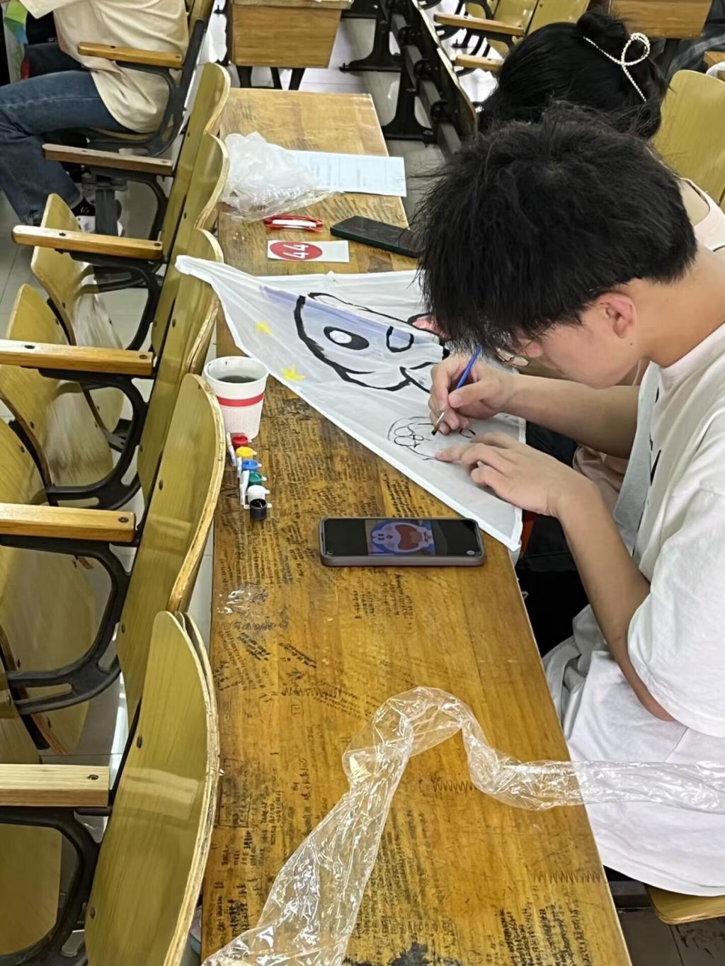 比赛过程中,同学们根据主题挥洒创意,从精心挑选颜色,再到勾勒图案,填充颜色等各个环节都一丝不苟认真对待,充分发挥自己的想象力,挥动手中的画笔,大胆构思,用笔描绘出充满幻想,充满活力的画,画出心中最美的世界。同学们的风筝主题鲜明,展现了广大湖科学子积极向上的精神风貌,表达出对祖国最美好的祝愿。