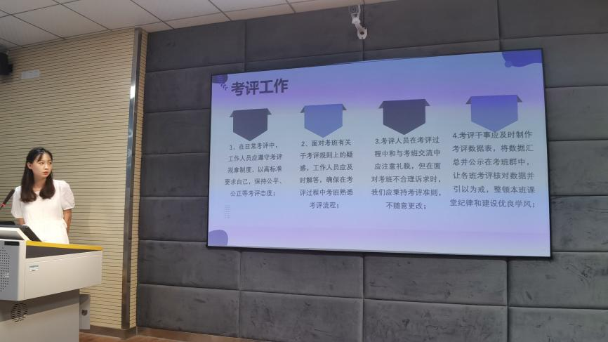 会议上,各部门负责人依次上台进行述职报告演讲,对其部门一学年的工作情况进行总结汇报。述职中,各部门负责人简明的概述了工作中的收获与不足,并提出了今后的整改措施和工作计划的方向以及对各自部门活动提出了一些创新性的建议,希望在今后的工作中各部门能够相互帮助,取长补短,共同进步将古天乐太阳集团城团委员工会打造成一个更好的集体。同时,各部门负责人也简述了自己部门中成员的经历变化,从略知到可见的进步成长。