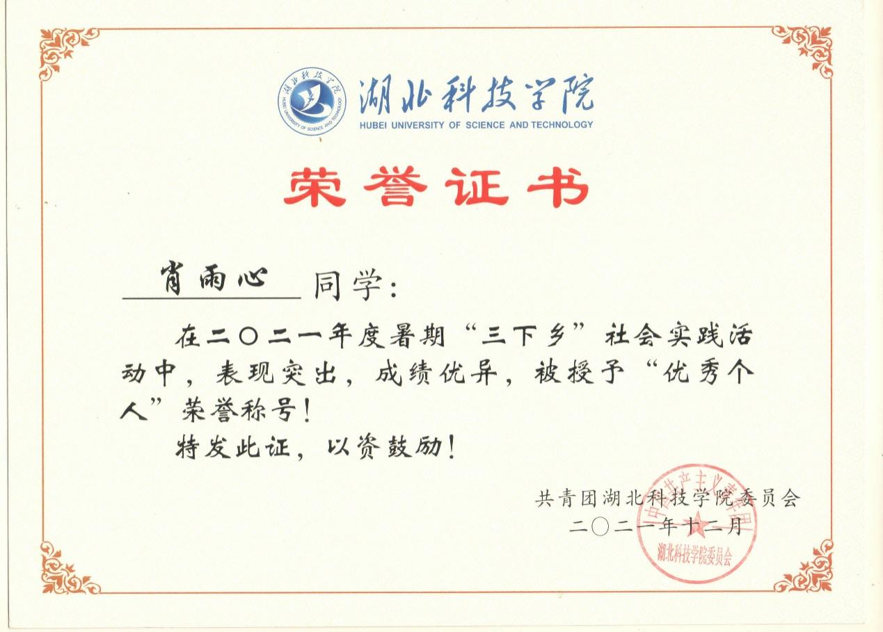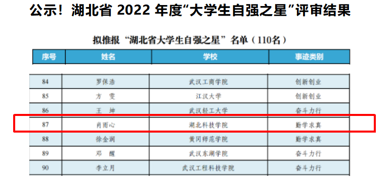 近日,由省团委、省学联组织开展的2022年度“湖北省老员工自强之星“评选结果揭晓,公司古天乐太阳集团城2020级临床医学专业肖雨心同学荣获2022年度“湖北省老员工自强之星“荣誉称号。