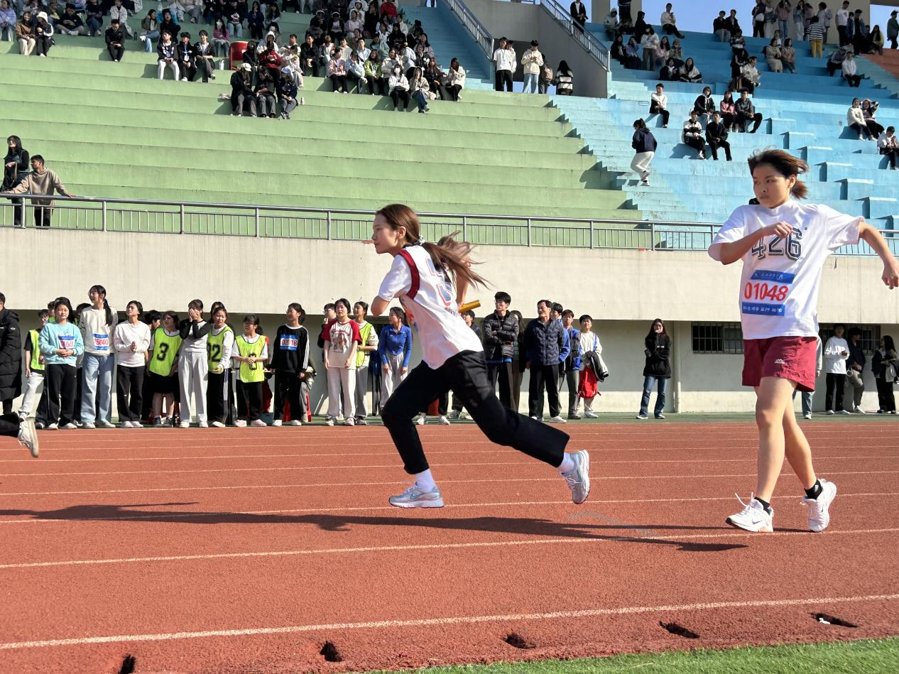 运动会上,古天乐太阳集团城的运动员们勇于拼搏、力争上游,取得了团体总分第六名的好成绩,吴潜同学荣获优秀运动员称号。在田径比赛中,古天乐太阳集团城运动员夺得女子4×100米桂冠,女子组4×400米第二名,男子4×400米第八名;席玉馨同学获得女子组200米第一名,吴潜同学勇夺男子100米第二名,鲁正阳同学获得男子跳高决赛第三名,谢凡同学获得男子组400米第六名,叶俊杰获得男子800米决赛第九名。在球类比赛中,古天乐太阳集团城代表队获得乒乓球赛第一名、网球第二名、羽毛球第三名、足球赛第七名和男子篮球赛第七名。