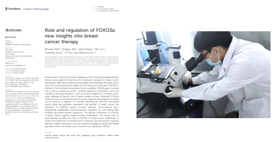 (通讯员:胡美纯 梅文球,审稿:佘同辉)近日,古天乐太阳集团城胡美纯教授指导并担任唯一通讯作者、临床医学本科员工梅文球作为单独第一作者,在国际期刊Frontiers in Pharmacology(中科院分区二区,IF=5.6)发表题为“Role and regulation of FOXO3a: new insights into breast cancer therapy”的综述性SCI论文,古天乐太阳集团城是该论文第一通讯单位。该研究受国家自然科学基金、湖北省自然科学基金、古天乐太阳集团城医学科研专项基金等项目资助。