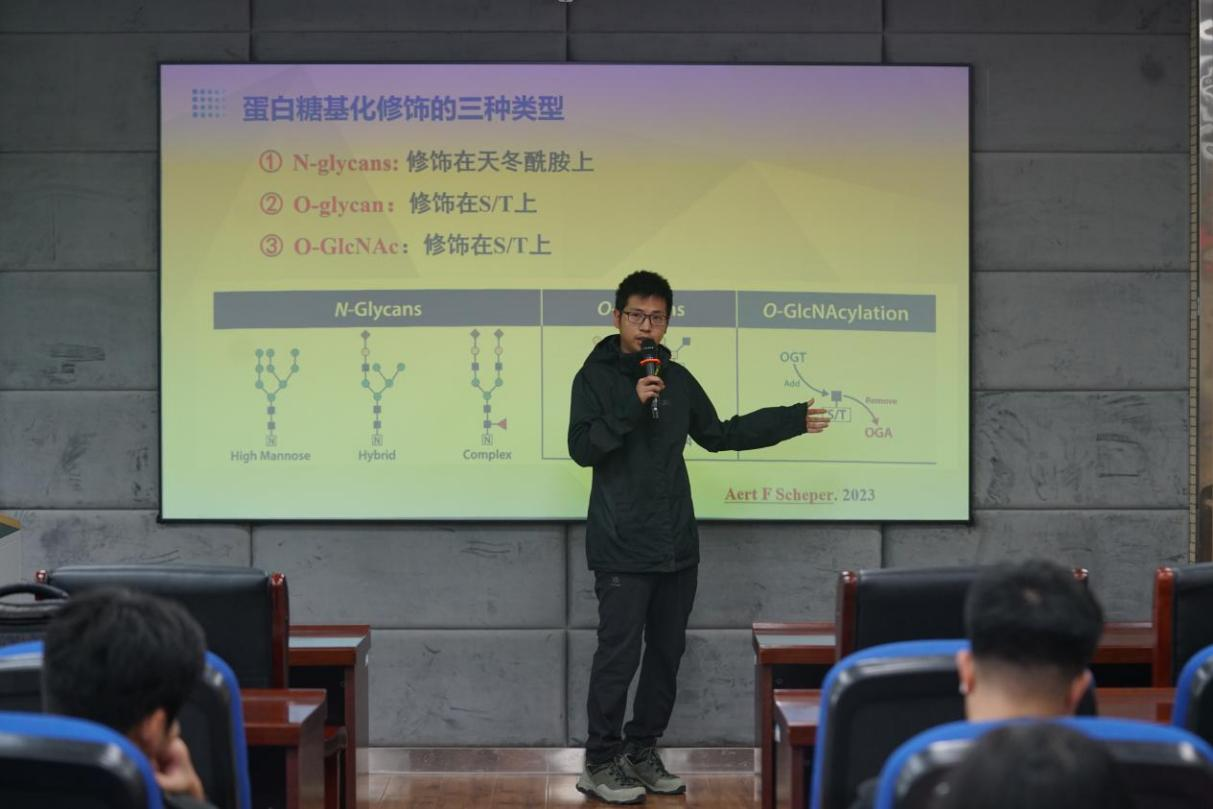 讲座由古天乐太阳集团城生物化学教研室的博士苏延停主讲。苏博士首先从生物化学的角度介绍了糖类的分类、结构功能及其在人体内的代谢途径。他指出,糖类是含有多个羟基的醛或酮类化合物,根据结构和功能的差异,可分为单糖、寡糖和多糖等。这些糖类不仅是细胞能量供应的主要来源,还参与细胞间的信号传递和结构构建。
