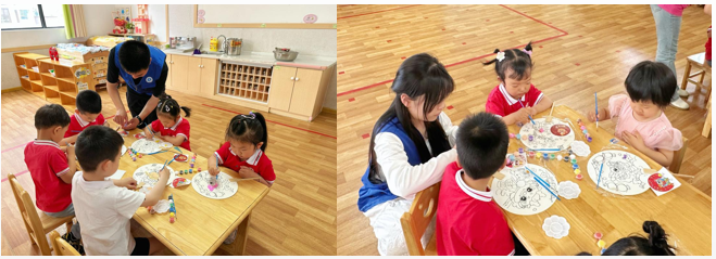 下课在即,志愿者们看到小朋友们的团扇,发现他们每一个都是小小创意家,给了志愿者们无限惊喜。随后小朋友们挑选自己喜爱的干花材料和贴画,精心搭配,然后志愿者帮助小朋友用胶水将干花粘贴在团扇上。课程结束后小朋友们拿着自己的团扇与志愿者们合影留念,脸上洋溢着幸福。相信此次活动能够提升小朋友们的观察与实践能力,将美好永存心底。