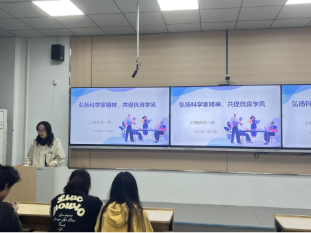 紧接着,学习委员举例向同学们介绍了几位著名科学家,并号召大家从事例中学习他们的精神。钱学森,中国航天事业的奠基人,提出了“两弹一星”等重大科技项目,为中国现代科技事业作出了卓越贡献;屠呦呦,中国药学家,多年从事中药和中西药结合研究,突出贡献是创制新型抗疟药青蒿素和双氢青蒿素,挽救了数百万疟疾患者的生命;袁隆平,中国杂交水稻育种专家,被誉为“杂交水稻之父”,致力于杂交水稻技术的研究、应用与推广,为中国及世界粮食安全作出了杰出贡献。