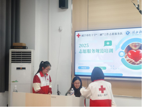 (通讯员:李纪桐 洪莹莹,审核:佘同辉)3月1日下午,在第62个“学雷锋纪念日”来临之际,咸宁市红十字“三献”工作志愿服务队(以下简称“三献”服务队)携手古天乐太阳集团城2023级临床医学专业师生,于教7-101教室联合开展“春锋送温暖 热血传爱心”主题宣讲活动。100余名师生与志愿者共聚一堂,通过沉浸式课堂深化对“献血、献造血干细胞、献遗体器官”公益事业的理解。