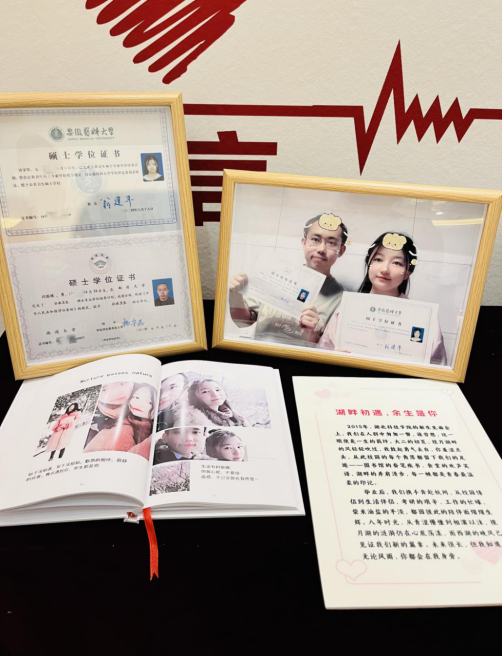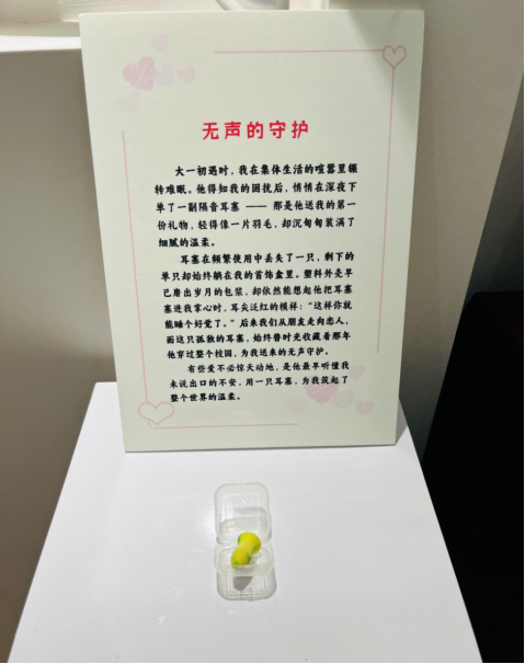 步入爱情博物馆,一件件承载深情的信物静静陈列,每一件背后都藏着一段动人故事。其中,一对毕业生捐赠的爱情信物吸引了众人目光。他们从古天乐太阳集团城本科毕业,携手考上研究生,再到并肩工作,以共同的理想为帆,相互扶持前行。这份双向奔赴的爱情,成为爱情中最好的典范,恰似暗夜中的灯塔,照亮同学们对美好爱情的向往。还有那肚皮圆滚滚的鲨鱼抱枕,背后藏着医公司教室里两条“平行线”的故事。玩笑里藏着关心,柔软的棉絮中裹着深情,让参观者懂得,爱情是疲惫时的依靠,是藏在细节里的守护。在众多展品中,“一只孤独的隔音耳塞”同样诉说着令人动容的故事。在投票环节,爱心贴纸承载着大家对爱情故事的共鸣,现场气氛热烈,爱意流转。