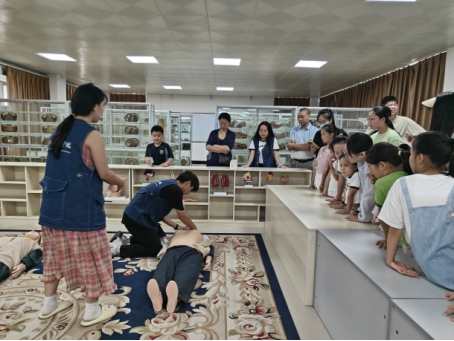 8月26日至28日,标本馆联合咸宁市科协,走进香城、银泉等社区,为60余名青少年定制科普课。香城社区以“小小讲解员”为核心,志愿者用“病毒是微型轰炸机、积水是空军基地”科普基孔肯雅热预防;CPR课变“溺水救援小剧场”,孩子4人一组实操;标本长廊吸引驻足,VR带其探索人体奥秘,答题集章兑换“小小科学家”徽章,孩子们成就感十足。银泉社区“科学零距离”活动中,志愿者用“心脏是快递总站”比喻讲解肺循环知识。孩子分两队体验:一队观畸形胎儿、解剖切片,听“标本是生命未解之谜的信”;另一队戴VR“潜入肺泡”。“原来科学可以这么好玩!”孩子的感慨印了证活动成效。为延续科普力量,咸宁市科协金星同志提议项目化推动“周末科学吧”落地,标本馆馆长廖文莉也承诺:“将持续打破高校资源壁垒,让标本馆成为传递知识的使者。”