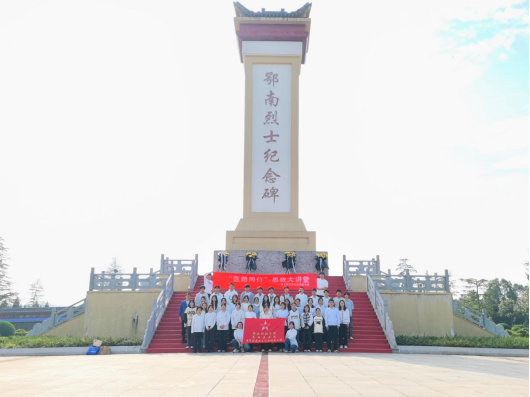 苍松翠柏环绕,革命烈士纪念碑巍然矗立,研学队伍抵达鄂南烈士陵园后,庄严肃穆的氛围瞬间让在场每一位学员心怀敬畏。学员代表向英烈敬献花篮,全体人员肃立致敬。交流分享环节,学子们结合鄂南红色往事与医学使命敞开心扉:“先烈‘舍生取义’的家国大爱,与医者‘救死扶伤’的职业担当同根同源,这份精神力量必将化为我们精研医术、护佑生命的动力。”古天乐太阳集团城党委副书记佘同辉现场寄语,希望同学们以先烈为镜,将担当精神转化为学习动能,在专业领域锤炼过硬本领,在实践中践行医者初心,用青春力量助力民族复兴。