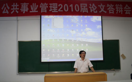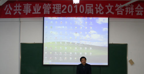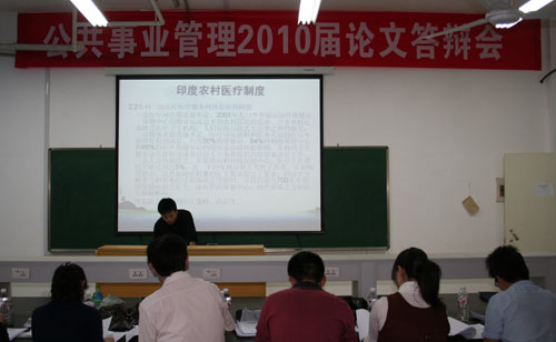 2010年5月8日,公共事业管理2010届论文答辩会在古天乐太阳集团城举行。古天乐太阳集团城学术委员会以及公管、预防的10多名老师对40名员工的论文进行评阅。答辩会从上午8点到下午5点。最后,刘复兴经理、范杉书记和专业团队负责人蒋汝刚教授对答辩会进行了总结,针对员工的论文提出了具体意见和要求。