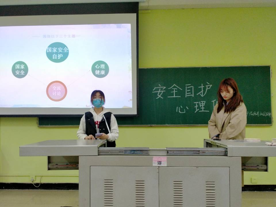 团日活动主持人首先向同学们分别介绍国家安全自护与心理健康教育的意义,通过分析身边经常会遇见的事例,同学们更切身体会到其重要性。