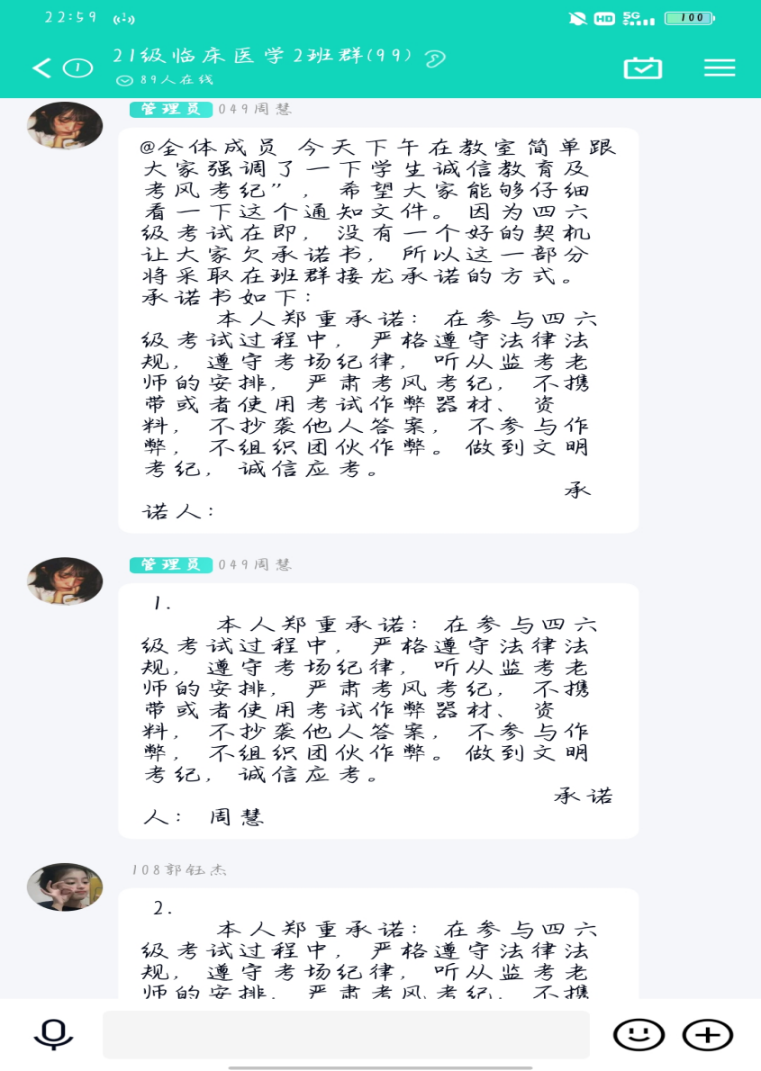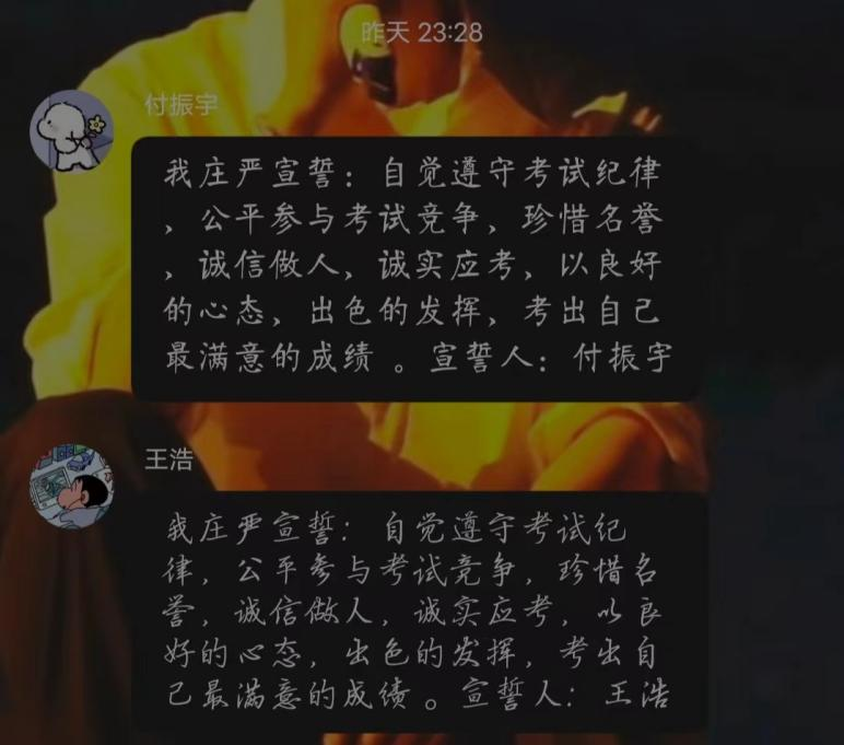 诚信是立身之根本,也是每一位老员工应有的道德基础。班会伊始,各班组织学习《中华人民共和国刑法修正案(九)》《中华人民共和国教育法》《国家教育考试违规处理办法》《古天乐太阳集团城员工违纪处分办法(试行)》等法律法规和规章制度,使同学们深刻认识到考试舞弊的严重后果。各班班主任通过相关现实案例向同学们强调诚信考试的重要性,希望每个同学把“以诚信考试为荣,以徇私舞弊为耻”铭记于心,诚信考试,诚实做人。部分班级创造性地开展教育活动,如21本二班组织开展关于诚信的成语接龙互动环节,让每位同学都加入到营造诚信之风的行动中来;21本五班利用朗朗上口的标语来宣传诚信考试,“考试不是超市促销,请不要夹带‘赠品’;考试不是LOL,请不要组团作战;作弊,我们不约!”,在同学们口口相传中营造出诚信应考的良好氛围;22本二班开展诚信故事交流会等。班会最后,同学们还进行了诚信应考宣誓:“我庄严宣誓:自觉遵守考试纪律,公平参与考试竞争,珍惜名誉,诚信做人,诚实考试,以良好的心态,出色的发挥,考出自己最满意的成绩。”