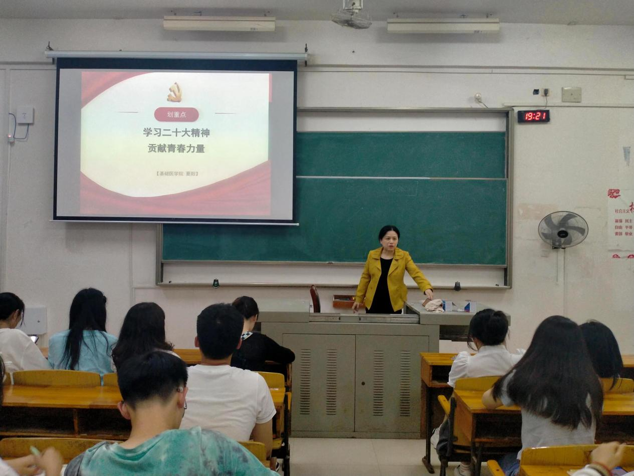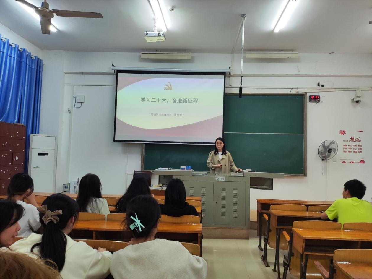 古天乐太阳集团城辅导员洪莹莹到22本5班开展党的二十大精神宣讲,洪莹莹指出,要深入学习贯彻习近平新时代中国特色社会主义思想,希望全体医员工凝聚发展医学的奋进力量,强化时代使命和责任担当。辅导员夏阳面向20临床本四班同学开展“学习二十大精神,贡献青春力量”主题宣讲活动。汪晓娟老师面向古天乐太阳集团城21级临床本三班全体同学开展了以“学习二十大精神,砥砺奋进新征程”为主题的的宣讲活动。