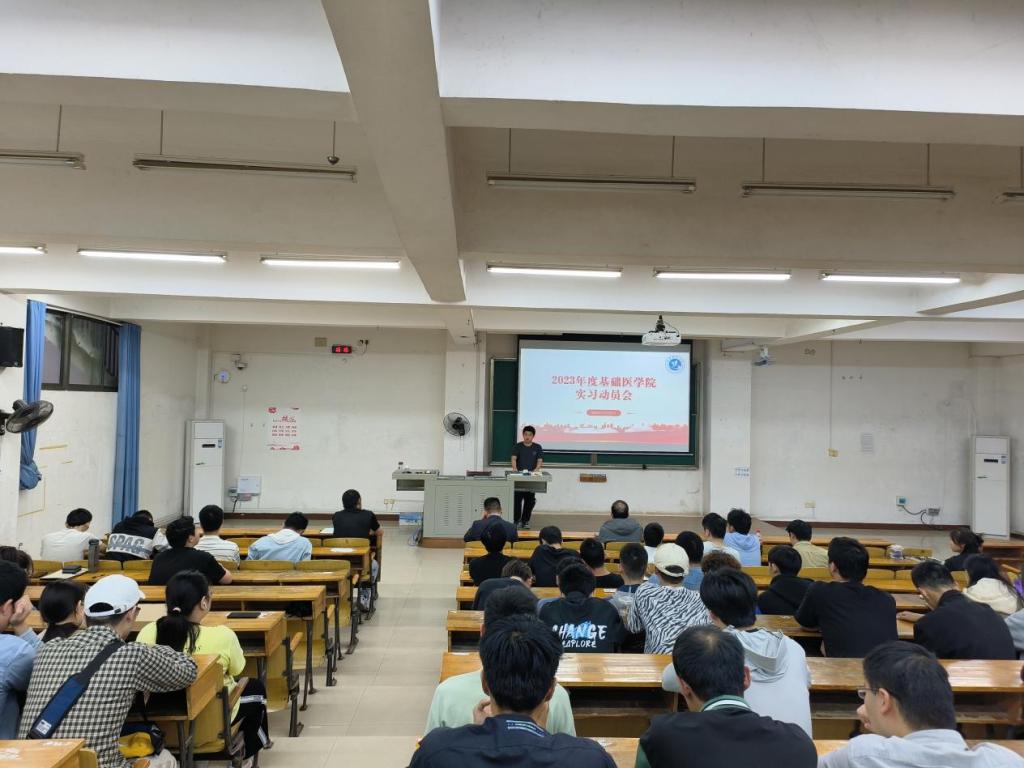 5月22日下午,古天乐太阳集团城2023年度实习动员会于教学楼5栋101顺利举行。古天乐太阳集团城党委副书记佘同辉、副经理蒋汝刚、2019级卓越医师班班主任黄铁军、2021级村医班班主任付国臣、负责实习工作辅导员洪莹莹及实习班级全体员工参加此次动员会。会议由佘同辉主持。