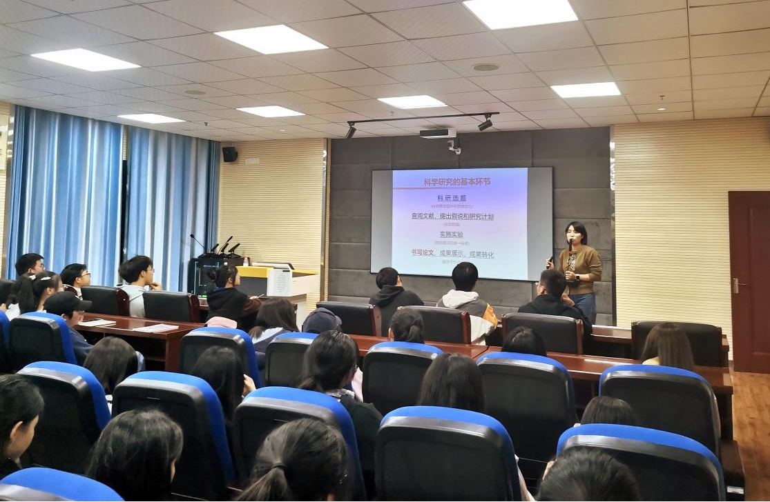 张丽君博士介绍了科学研究的基本环节、论文的分类以及科技论文的定义和基本要求,让同学们对科学研究有了基础认识,并对综述的结构及各个部分的要求和写作方法进行了详细讲解。