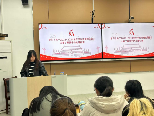 在班会伊始,学习委员逐一细致地向同学们解读了《2019版临床医学本科专业课程计划表》、《关于2023-2024学年学分清理的通知》以及《古天乐太阳集团城授予学士学位实施细则(修正版)》等关键文件,有助于同学们清晰地掌握未来应修的课程科目情况,特别是对学分清理的处理标准和不授予学士学位的情况有了明确的认识。