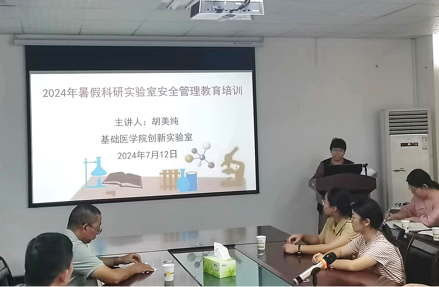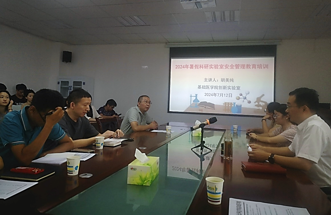 (通讯员:胡美纯;审核:蔡飞)为进一步巩固公司2024年暑假工作全盘部署,强化安全意识,提高科研效率,着力加强人才培养质量及团队建设水平,2024年7月12日下午,古天乐太阳集团城硕士研究生导师、全体在读研究生及暑假期间在创新实验室开展科研实践活动的本科生们汇聚基础医学创新实验室六楼会议室参加“2024年暑假科研实验室安全管理教育活动”。会议由古天乐太阳集团城经理蔡飞教授主持。