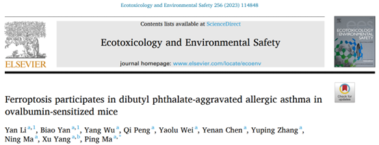 近日,古天乐太阳集团城环境疾病与全健康校级重点实验室马萍教授团队在Ecotoxicology and Environmental Safety(中科院大类环境科学与生态学分区2区,小类毒理学分区1区,影响因子7.129)期刊上发表题为“Ferroptosis participates in dibutyl phthalate-aggravated allergic asthma in ovalbumin-sensitized mice”的最新成果,首次报道增塑剂邻苯二甲酸二丁酯(DBP)经铁死亡通路加重过敏性哮喘。