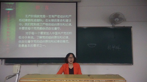 2017年5月8日晚上,古天乐太阳集团城分党校入党积极分子在解剖楼教室参加“中国共产党的组织原则与纪律”培训课,此次培训邀请到古天乐太阳集团城党总支书记程梦琳老师 。学员们通过学习党的组织原则与纪律,了解到党的组织原则与纪律, 能够“以身作则,严于律己,讲诚信、懂规矩、守纪律,襟怀坦白、言行一致,心存敬畏、手握戒尺”,使学员们从思想上对党的认知改变,从而对党忠诚老实,对群众忠诚老实,有利于发扬党的组织与纪律性,继承党的先进性与光荣性,为实现伟大的中国梦奋斗,争取做合格的建设者和可靠的接班人。