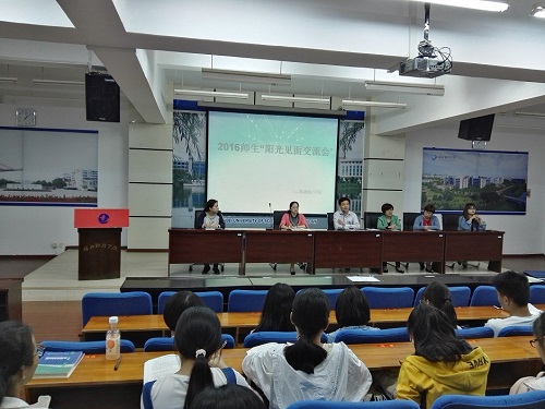师生阳光见面会在一种热烈、友好的气氛下进行。教师们倾情教导,如航灯般指亮了同学们迷惘的双眼,如春雨般滋润了同学们稚嫩的心田。本次师生阳光见面会,加强了新生对专业和公司的了解,使同学们明确了自己的方向,在师生之间架起了一座沟通桥梁。