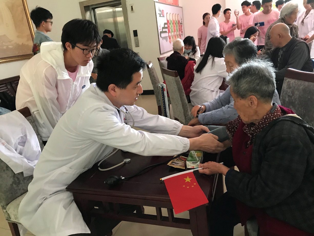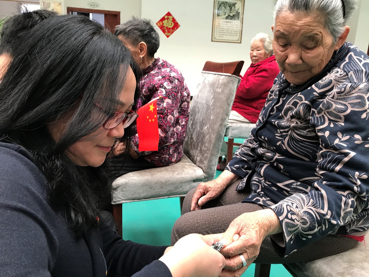 在活动中,全体教师党员和员工志愿者与老人们热情互动,开展“六个一”系列活动:“唱一唱歌、跳一跳舞、讲一讲党史故事、测一测血压、剪一剪指甲、聊一聊家常”。支部党员王全老师围绕党带领人民群众在革命战争年代和社会主义建设时期的斗争史讲述了精彩而生动的党史故事。教师、同学及老人们合唱了《东方红》、《没有共产党就没有新中国》、《社会主义好》等红歌。在党史故事讲述和红歌合唱活动中,全体党员唱响共产党好、社会主义好、伟大祖国好的时代主旋律,进一步了解党的光辉历史、感悟党的初心使命、领会党的创新理论、体会党的精神谱系,传承红色基因,牢固树立社会主义核心价值观念。