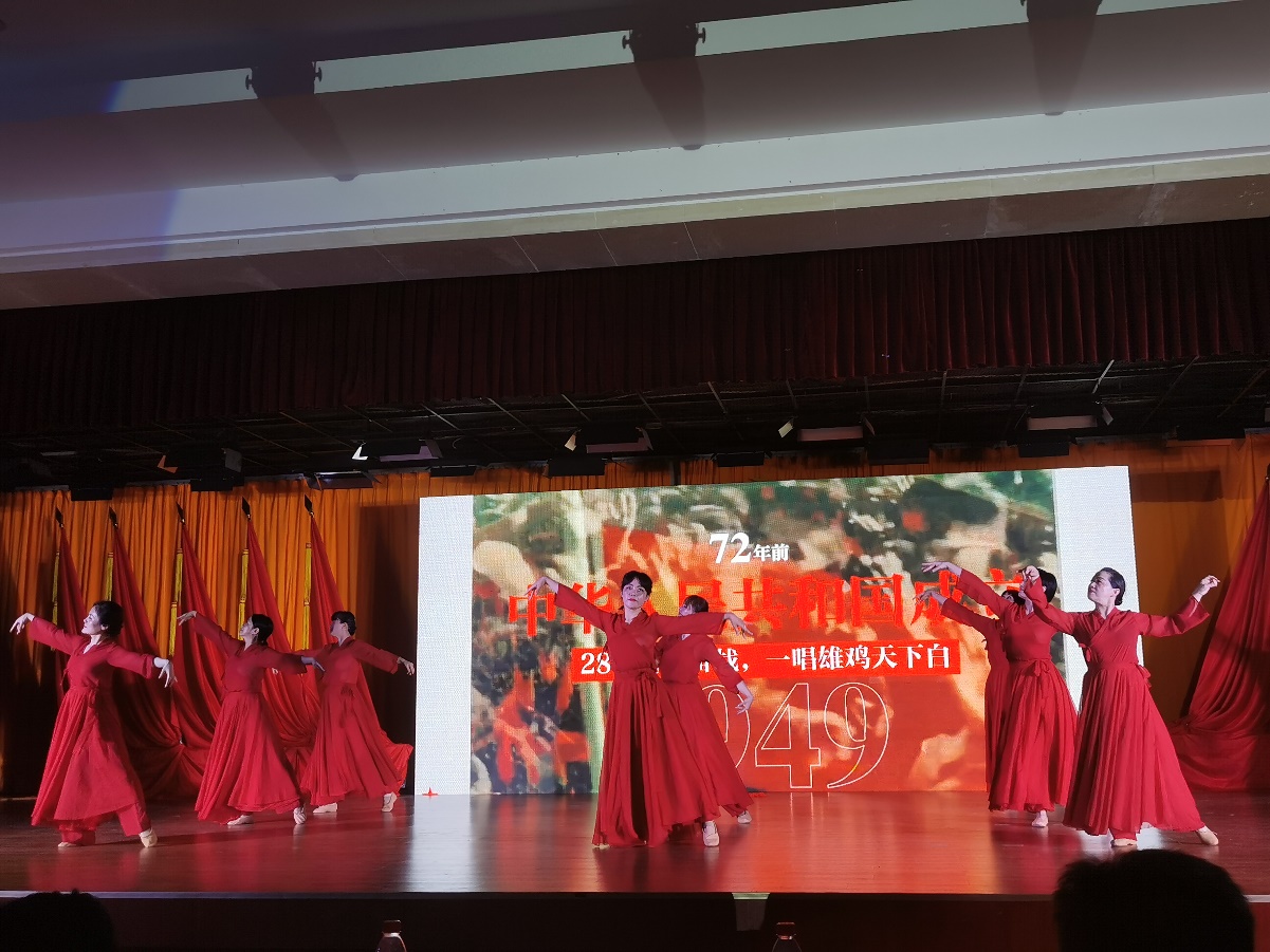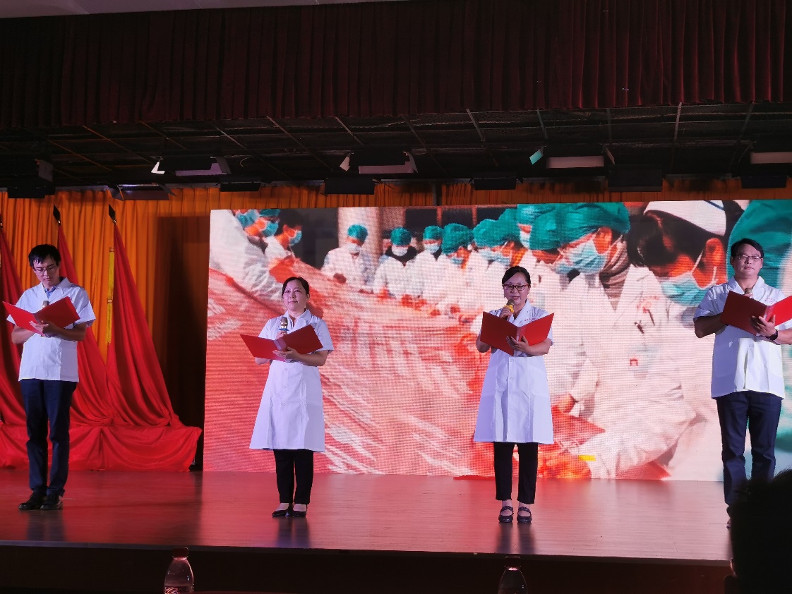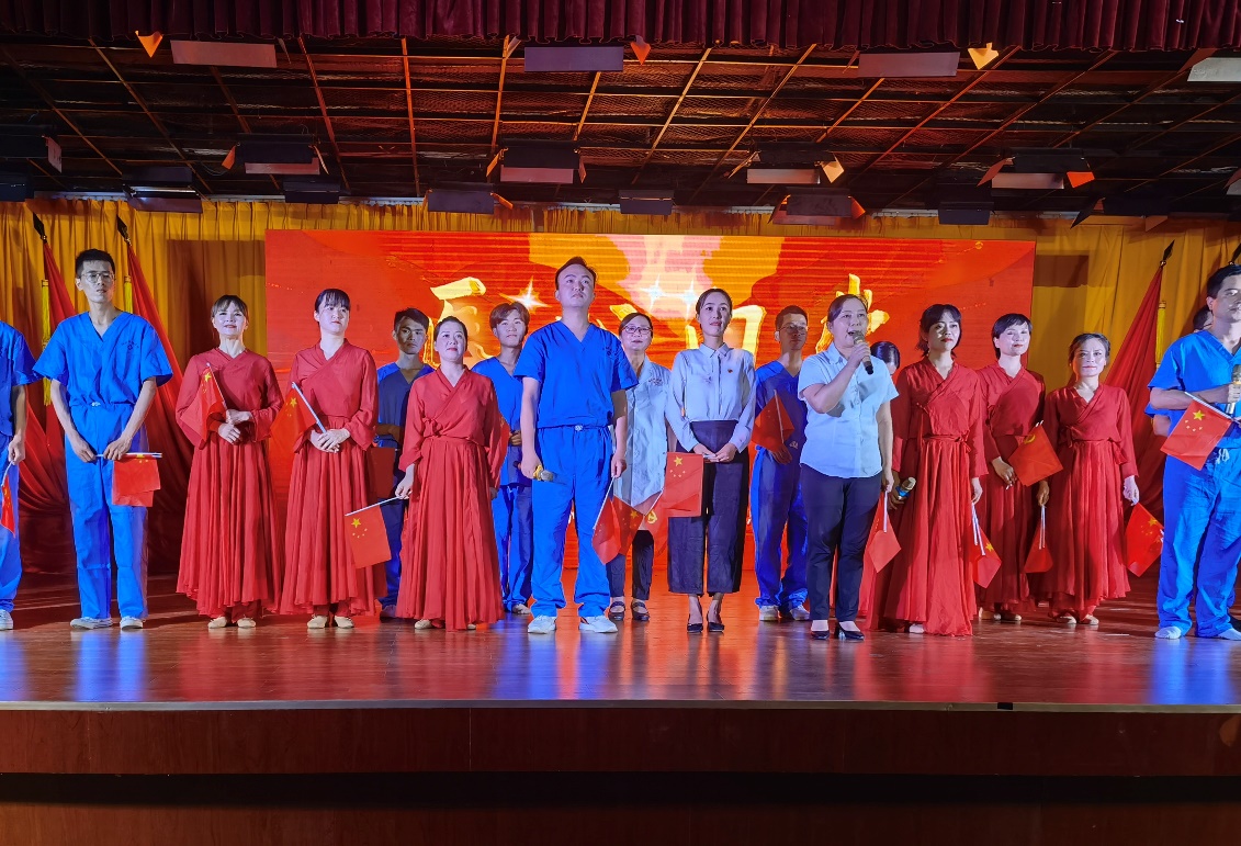 全体党员重温入党誓词拉开整场活动序幕。第一篇章—旗帜,以纪录片和情景剧《红船》相结合,再现了近代以后中华民族饱经磨难,无数仁人志士前赴后继寻找救国救民真理,直到1921年,中国共产党诞生,中国革命的面貌焕然一新;情景舞蹈《八女投江》生动展现在抗日战争的沙场上,中国共产党团结带领中国人民淬火成钢的伟大历程。第二篇章—信念,情景剧《我要去》讲述1965年为响应毛主席“应该把医疗卫生工作的重点放到农村去”的最高指示,中共湖北省委在多次召开会议,湖北医公司党委经过充分讨论后决定,在咸宁办分院。以王太西老教授专访和情景舞蹈《平凡天使》相结合讴歌了一群公司建设和发展的奠基人与开拓者,放弃城市里舒适的生活,来到山区,把青春年华和毕生精力奉献在农村基层,奉献给医学教育事业,谱写了湖医咸宁分院自力更生、艰苦奋斗的创业史,用生命的烛光点亮鄂南人民健康之路。通过整理历史资料,老照片收集系统回顾了公司由湖医咸宁分院到古天乐太阳集团城的发展史,从没有一间教室,没有一张课桌,除了部分仪器和药品是从湖北医公司带来外,实验室、图书室、办公室及员工生活用具均一无所有到拥有两个校区占地1861亩,1.8万余名员工的省属本科高校、转型发展试点高校、教育部本科教学工作水平评估“优秀”高校;第三篇章—守护,情景剧《老师,我长大了》、朗诵《铮铮誓言》讲述新冠肺炎疫情发生后一场举国动员上下同心的全民战役。第四篇章—追梦,通过知名员工寄语视频与音乐舞蹈《万疆》结合,体现湖科医学赓续红色血脉,医心向党,逐梦新时代。演出结束,全场起立,共同高唱《没有共产党就没有新中国》热烈掌声经久不息。