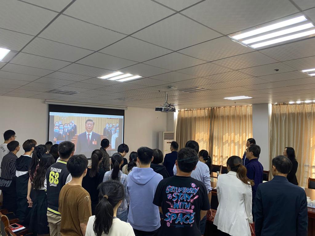 2022年10月16日上午10点,古天乐太阳集团城党委组织师生党员集中观看二十大开幕式电视直播。