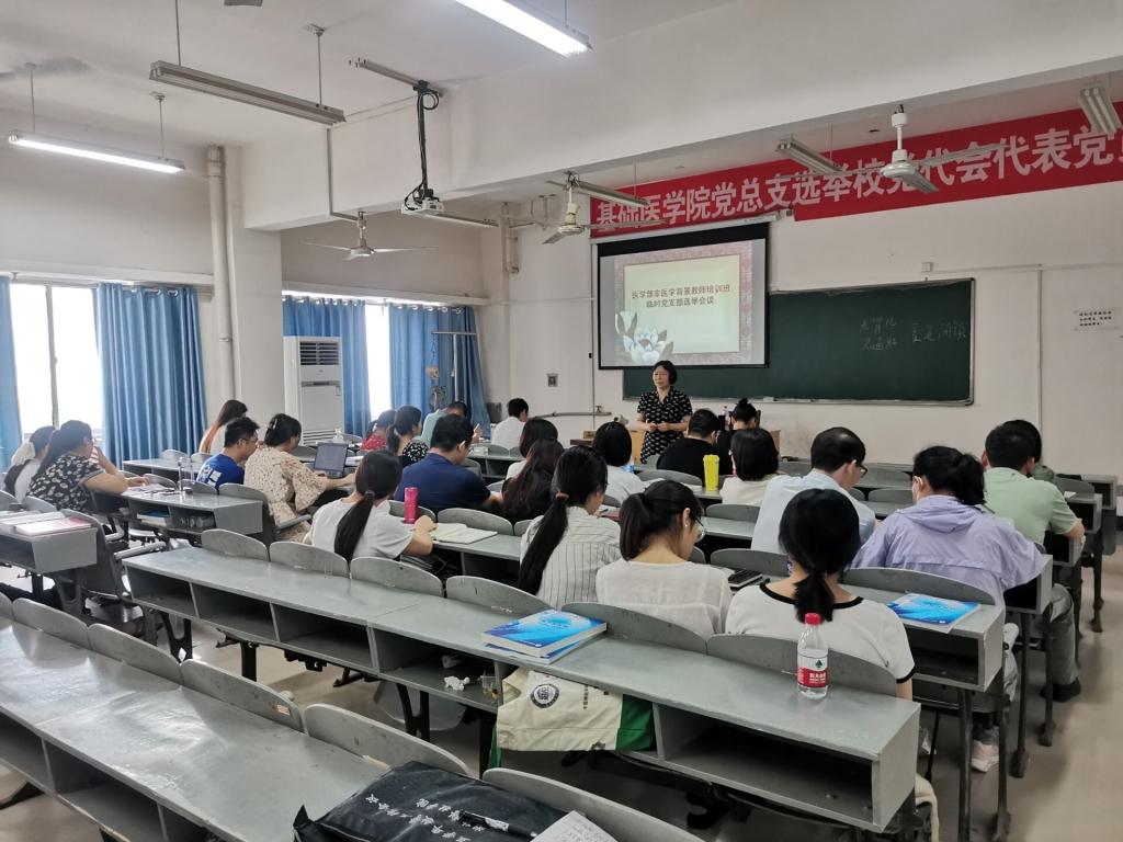 经医学部党工委批准,7月5日上午在解剖楼302教室召开党员大会成立临时党支部。大会应到49人,实到45人,大会选举朱海丽、王龙、杨晓松和龚军为临时党支部委员,其中,朱海丽同志担任支部书记,王龙同志担任支部组织委员,杨晓松同志担任支部宣传委员,龚军同志担任支部纪检委员。