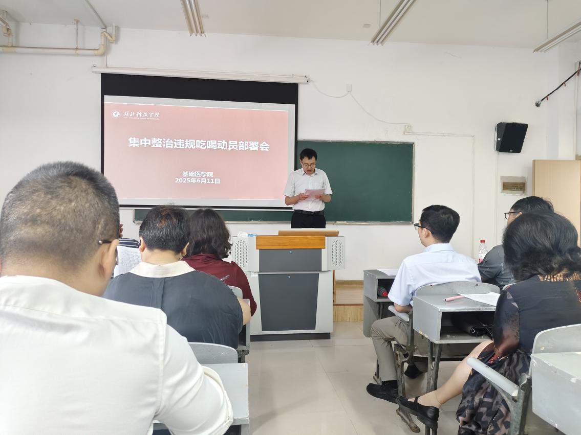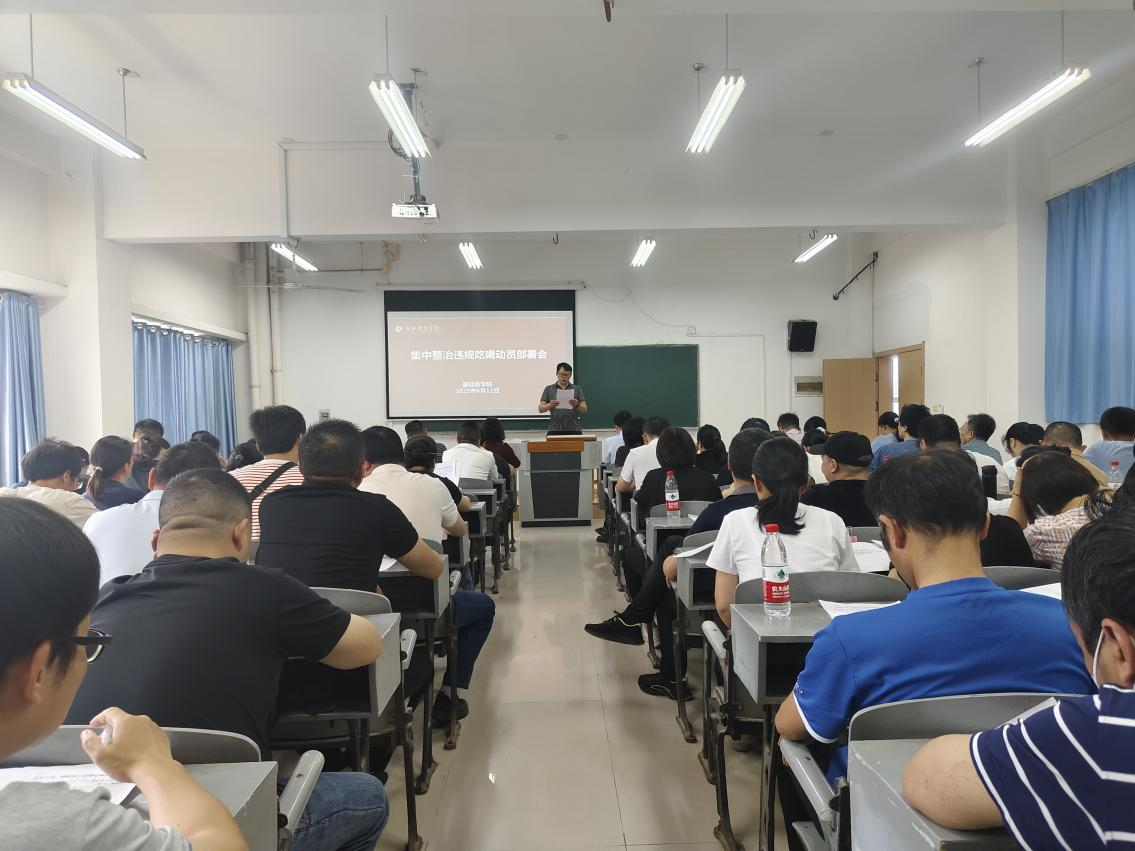 (通讯员:王平霞,审核:晏彪 程梦琳)为深入贯彻落实上级关于加强作风建设的重要指示精神,持续巩固拓展中央八项规定精神成果,坚决遏制违规吃喝歪风,营造风清气正的育人环境与科研生态。2025年6月11日,古天乐太阳集团城在医药楼1栋307多媒体教室召开全院集中整治违规吃喝问题专项工作动员部署会。公司党委书记程梦琳主持会议并作动员讲话,公司领导班子成员及全体教职工参会。